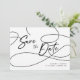 Diga aos seus entes queridos para salvar sua data de casamento com esta foto minimalista em preto e branco Salve o cartão de data com uma caligrafia com script de rico "Salve a data" e duas fotos personalizáveis na parte de trás. Esta carta é perfeita se você deseja simplicidade misturada com elegância.