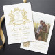 Casamento elegante de crista floral de ouro vintage salve o cartão de data com uma foto e um código QR no verso — perfeito para um casamento vintage clássico ou romântico moderno. Para uma personalização mais avançada deste design, clique no BOTÃO DE FERRAMENTAS DESIGN acima!