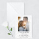 Moderno e elegante salve a placa de data com um design preto e branco minimalista com uma foto. Personalize com seus detalhes de casamento com a fácil edição de modelo com uma fonte elegante de script e fonte de serifa elegante. Então, substitua a foto na frente pela sua. Verifique os itens correspondentes na coleção "Modern Elegant".