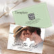 Anuncie seu amor em estilo com nossos Cartões de Casamento Salva a Data, projetados para refletir a elegância de sua próxima celebração. Apresentando uma fotografia simples e elegante do casal, estas cartas exibem uma combinação perfeita de escrita de caligrafia e tipografia refinada, criando um design clássico, clássico e sofisticado que dá o tom para o dia do seu casamento. Com um layout minimalista, mas eterno, as cartas são ideais para qualquer primavera, verão ou casamento outono. Um toque exclusivo é a inclusão de um código QR, permitindo que os convidados acessem facilmente mais informações no seu site de casamento azul para mais detalhes, garantindo que tudo esteja a apenas um clique. Este anúncio de noivado é a forma perfeita de deixar que seus entes queridos saibam salvar a data de uma forma na moda, moderna e prática.