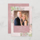 Este casamento para salvar o cartão de data é simples, rústico, elegante e bonito. Ele mostra sua foto em uma moldura rosa-mave cercada por um bando de rosas pintados manualmente, flores, folhas de eucalipto e verde em um fundo de rosa poeirento marmoreado. O título diz: Salve a Data na caligrafia de script lacy com espaço para os nomes do casal, a data e o local. A parte traseira tem um pequeno buquê amarrado com um arco branco. Uma maneira maravilhosa de deixar seus amigos e família saberem sobre seu próximo casamento.