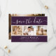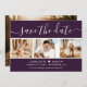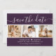 Foto de casamento violeta elegante salve o cartão de data com uma fonte moderna e uma colagem de fotos. Personalize facilmente este cartão com suas imagens e detalhes de casamento, incluindo um site de casamento, se aplicável.