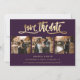 Elegante roxo e cartões salve a data de 4 fotos com caligrafia moderna. Personalize facilmente este cartão com suas imagens e detalhes de casamento, incluindo um site de casamento.