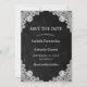 Foto do casamento russo do país salve o cartão de data com uma foto na frente e dois corações de burlap e um lugar floral branco contra fundo preto no fundo do quadro negro. Design de cartão ideal para a sua festa de casamento no país.