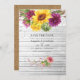 Convite de casamento rústico boho de girassóis e dálias em tons de bordô e cores solares. Ideal para qualquer tema ou casamento de jardim.