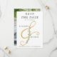 Simples e na moda, este casamento botânico minimalista moderno salva o cartão de data apresenta um elegante e elegante e fino e decorado com delicadas folhas de eucalipto. Há um modelo de foto atrás. Encontre produtos correspondentes na coleção ou entre em contato comigo através do bate-papo Zazzle para obter produtos adicionais ou outras formas de cores.