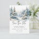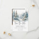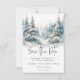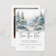 Escapar para um retiro sereno com a sua foto de casamento, salve o cartão. Este requintado design mostra uma pintura de cor d'água que respira uma majestosa pintura de uma majestosa floresta coberta de pinheiros em uma serena neve coberta por uma paisagem inclinada. Os tons naturais acinzentados de verdes, azuis lacrimogêneos e cinzentos criam uma atmosfera eterno e sofisticada, lembrando uma fuga pacífica dos Alpes. O claro fundo branco e o texto moderno de fontes adicionam um toque de elegância contemporânea, equilibrando a beleza natural da cena. Esta design não só anunciará seu dia especial como também definirá o tom perfeito para uma celebração verdadeiramente memorável, convidando seus convidados a se juntar a vocês em uma jornada de tranquilidade e amor. Criado pela imprensa simplesmente de farmácia.
