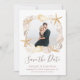 O "Beach Seashell Photo Blush Pink Elegant Wedding Save the Date" é um cartão de aviso de casamento personalizável e lindamente projetado que captura a essência de um casamento à beira-mar. O cartão apresenta uma fotografia deslumbrante do casal rodeado por uma moldura de conchas, com sotaques suaves em rosa blush que adicionam um toque de elegância e sofisticação.