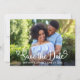 Corações de Script de Caligrafia Moderna Salvem o Cartão com fotos de Casal de Anúncio de Casamento de Noivado