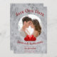 Anuncie sua data de casamento a amigos e familiares com esta Foto do Coração Vermelho. O design de lançamento apresenta uma foto posicionada do casal feliz adornada com dois corações, design de texto limpo e fundo de mármore com um padrão de mármore correspondente no verso.