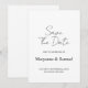 Convite de casamento simples e elegante para salvar a data, apresentando um layout limpo com tipografia de script moderna e sua foto de noivado favorita. Um design minimalista atemporal perfeito para casais contemporâneos que amam papelaria refinada e discreta.
