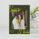 Anuncie o seu casamento em estilo com esta Deco de Arte Retroativa Salve o cartão de Data. Apresentando um fundo verde-oliva escura e ousado com um texto característico, este design único combina elegância de vintage com o talento moderno. O layout personalizável de fotos adiciona um toque pessoal, enquanto a tipografia de arte deco traz uma sensação de eterno e inspiração retrorreflectora. Perfeito para casais que buscam um na moda e uma maneira distinta de compartilhar sua data de casamento, esta opção Salvar a data está disponível como download digital ou cartão impresso para planejamento de casamento sem esforço.