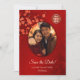 A cereja vermelha floresce e um símbolo vermelho de felicidade dupla em um fundo vermelho rubi brilhante. Salve o texto da data em um script elegante. Personalize-o com a sua fotografia. Produtos de casamento chineses correspondentes disponíveis.