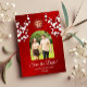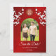 Cereja branca floresce e um símbolo de felicidade dupla dourada num fundo floral vermelho brilhante. Salve o texto da data em uma fonte elegante. Personalize-o com a sua fotografia. Produtos de casamento chineses correspondentes disponíveis.
