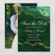 Cartão de Save The Date de Geodo de Ágata Mármore Verde Esmeralda e Dourado em Aquarela Moderna e Elegante - Parte de Trás da Foto