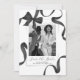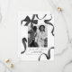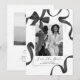 Estes cartões de salvar a data do casamento apresentam um fundo branco simples, com um centro de foto adornado com uma bela fita e laço de aquarela preta. No verso há outra foto e mais detalhes sobre o seu casamento futuro.