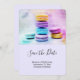 Salve o cartão de data com uma fotografia deliciosa que contém uma pilha de macarões coloridos.