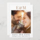Casamento moderno salve a data com sua foto, suas iniciais monográficas em uma grande tipografia de moda dourada e você salva os detalhes da data em uma simples tipografia.