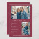 Moderno e na moda de casamento 2 fotos Salve a data com um fundo de amora/burgundy personalizável. Inclui seus nomes, data de casamento planejada, local e seu site de casamento. A parte traseira deste cartão foi deixada em vazio, mas é o ponto perfeito para adicionar mais fotos e texto.