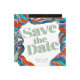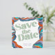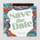 Você está procurando um casamento retro-moderno único e moderno e moderno, salve a data? Olhe para nossa foto de Wavy Verde Rô Verde, inspirada no retrô. Salve a data! Esta onda que salva a data apresenta lindas linhas onduladas pintadas à mão, trabalho de arte com um desenho abstrato colorido e boho dando uma aparência única e tendenciosa, excelente para um tema de casamento retrô. Você pode adicionar uma foto.