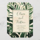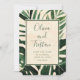 Anuncie seu dia especial com estes cartões salve a data maravilhosos com as frontas de palmeiras tropicais de aquarelas e folhas monstruosas em um fundo de aquarela clara. O verso tem um espaço reservado para sua foto. Um excelente de anunciar um casamento de destino.
