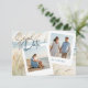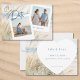 Anuncie seu dia especial com nosso charmoso cartão de data, capturando a beleza serena de uma cena de praia de aquarela com delicadas gramíneas marinhas. Apresentando dois encantadores quadros de fotos instantâneas para suas fotos favoritas, este cartão combina perfeitamente o encanto rústico com elegância costeira. O verso continua o tranquilo motif de praia, destacado por um romântico caixa de texto branca em forma de coração, ideal para compartilhar seus detalhes de casamento. É o prelúdio perfeito para a sua comemoração na praia! Criado pela imprensa simplesmente de farmácia.
