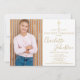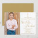 Convite de Primeira Comunhão elegante com assinatura dourada save the date com uma assinatura elegante em script dourado e foto especial. Personalize com as informações do seu evento especial em letras douradas elegantes neste design neutro em termos de gênero. Criado por Thisisnotme©