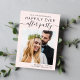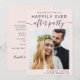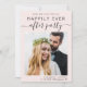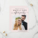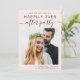 Elemento de rosa claro moderno e chico ou pequeno anúncio de casamento com uma recepção, salve a data que apresenta sua foto do dia de casamento e "Salve a data para nossa festa feliz" em uma mistura de simples tipografia e roteiro de tendências com balanços. Em sua foto, adicione seus primeiros nomes e data e local da recepção/festa; ao contrário, personalize seu anúncio de casamento e suas informações de recepção em mais detalhes.