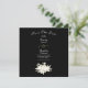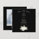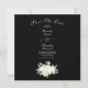 Este Anúncio para salvar a data tem um fundo preto com um fundo dourado e branco negrito floral. É simplesmente elegante! Personalize-o com a sua fotografia favorita no verso, realçada com rosas douradas e brancas