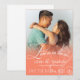 Este divertido Salvar Data apresenta um gradiente de cor pêssego com uma linda tipografia de script "O Amor Está No Ar". Fácil e simples de personalizar ~ basta usar o botão PERSONALIZAR para adicionar seu texto e sua foto favorita! Vem em 13 cores. Para perguntas ou pedidos personalizados, envie um e-mail para: cheryl@cheryldanielsart.com. Design original "Love Mist" por Cheryl Daniels © 2014.