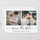 Anunciamento de Noivado de Casamento Fotográfico 2 Manuscrito de Caneta Mínimo Moderno, mas Elegante, Salve o Cartão de Data
