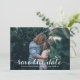 Fotografias modernas e caprichosas salvam a data da placa lisa com caligrafia branca e branca moderna, com triângulos de padrão geométrico. Você pode personalizar a foto, os textos e o padrão posterior. Uma versão do cartão postal também está disponível.