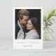 Este simples casamento de fotos em chic salve a data da modelo de carta lisa apresenta uma design elegante, minimalista e moderna. A frente apresenta seus primeiros nomes sob sua foto favorita, veiculada com uma combinação impressionante de duas fontes distintas, com 'e' em um roteiro luminoso e fluente entre seus nomes, que estão no alto dos casos com uma aparência formal arrojada e nítida. Escolhemos um tom de ouro elegante chamado Califórnia Dourada para esta parte da design. O texto da data na frente logo abaixo dele é preto padrão. Este design funciona melhor quando ambos os nomes são de comprimento bastante semelhante. Se um nome é muito longo e o outro é muito curto, o efeito geral pode parecer desequilibrado. Nós temos outra versão deste cartão que é muito similar, mas que apresenta uma mensagem 'SAVE the DATE' na frente usando esta mistura de fontes em vez de usar seus nomes nesse elemento do design, então por favor dê uma olhada nessa versão também, é um dos nossos designs mais populares e foi ele que nos inspirou a criar esta versão! Na parte traseira do cartão, você pode, claro, além de substituir nossas informações de exemplo por suas próprias, excluir campos de texto que você não precisa, ou alterar o texto, bem como alterar a fonte, o tamanho e a cor. As cores de texto padrão na parte traseira são um tom de cinza e um preto ligeiramente suavizado. A cor de fundo padrão em ambos os lados é definida como transparente, para permitir que a cor do papel sirva simplesmente como tom base. Mas você pode editar isso e mudar a aparência de um ou de ambos os lados nesse aspecto, bem como para se adequar ao seu estilo. Personalize este casamento elegante e minimalista, salve o modelo de cartão plano com sua foto e sua inspiração e torne-o exclusivo seu!