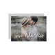 Salve nosso encontro! Anuncie sua data de casamento para a família e amigos com este elegante, salve a carta de encontro. Ele apresenta uma elegante escrita florescente com a camada clássica de tipografia. Personalize adicionando nomes, data, local, foto e outros detalhes do casamento. Isto para salvar o anúncio de data é perfeito para qualquer tema de casamento e estação. Este design está disponível como placa plana, ímã e cartão postal.