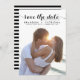 Elegante, salve a placa plana de fotos com script de caligrafia branca e padrão de listras preto e branco. Este eterno, exceto o anúncio da data, será perfeito para qualquer tema de casamento.