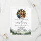 Um elegante cartão Save the Date de Aniversário de Casamento com montanhas em aquarela e árvores de pinheiro e 1 foto especial que você pode personalizar com seus detalhes.