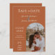 Anuncie seu dia de casamento com esta Foto Moderna do Arco Boho Salve o Anúncio de Data. Salve o design de data com posicionamento de fotos no estilo de arco para o casal feliz com design de texto elegante e moderno. Adicione fotos e detalhes do casamento para personalizar.