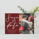 Esta sólida foto de casal de casamento Burgundy Salve o cartão de datilografia apresenta um roteiro branco clássico para uma noiva e um noivo se casarem em um local formal da noite. Adote romance com esta cor rica e ousada e a sua fotografia favorita do noivado. A tipografia minimalista e romântica convida a um casal moderno.