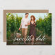 Script de Caligrafia Moderna Salva A Placa Kraft Foto Foto Do Casal De Anúncio Do Noivado De Data