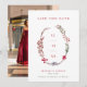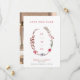 Um casamento no inverno moderno salva o anúncio de data com uma coroa aquática aberta assimétrica constituída por bagas coloridas vermelhas, azuis e castanho, com folhas verdes. Personalize com seus detalhes na frente e sua foto no verso.
