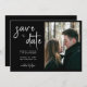 Casamento minimalista de fotos de noivado, salve a data em preto e branco simples com um moderno roteiro de caligrafia manuscrito. ++++++++++ Adequado para quaisquer casamentos temáticos modernos de na moda de estação.