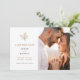 Se você está planejando um casamento no outono, este é o cartão de data para você. Esta foto de solteiro para salvar a placa de data apresenta um desenho de folhas de outono desenhado manualmente, tanto na frente como no verso. O verso também inclui espaço para adicionar o URL do seu site de casamento.