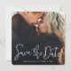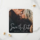 Este simples e na moda, casamento de fotos moderno, salve a data da placa simples modelo de 'Salvar a Data' em um roteiro animado e moderno com seus nomes, data e local de casamento em uma linha de solteiro abaixo dela. O texto é branco claro. Fizemos a forma padrão nos cantos arredondados, mas é claro que você pode mudar isso e escolher cantos agudos em vez disso, e ambos parecem funcionar maravilhosamente com esta design! No verso, escolhemos uma ordem atípica para a informação, colocando o texto 'Salvar a Data' depois do texto 'para o casamento de', que empresta a ela um charme menos viajado. Você pode mudar facilmente esta ordem ou qualquer outra coisa para atender às suas necessidades. Nas costas, escolhemos um tom chamado Fumaça Branca que é uma cinza muito leve, com a maioria branca. Você pode mudar isso facilmente selecionando uma das cores básicas nas ferramentas de edição ou digitando um número de cor se você tiver uma matiz específica em sua pesquisa, ou olhando para a ferramenta de espectro de cores e escolhendo algo à vista. O tom de texto padrão na parte traseira é cinza, mas você pode editá-lo a favor de outra cor de texto e também pode alterar qualquer fonte. Use as ferramentas intuitivas de edição e design, sua foto favorita e sua inspiração para fazer com que este casamento de fotos simples salve o cartão de data exclusivamente seu!