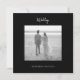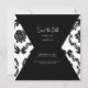 Estilo de Envelope Damasco Preto e Branco Quadrado. Foto: Casamento Salve a Data. De volta com sobrenomes de Foto da Noiva e do Groom, assim como o texto Casamento. Site. Filtro preto e branco aplicado à foto.