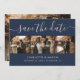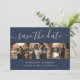 Cartões salve a data personalizados de fotos de casamento azuis e azuis com marinho, com 4 imagens e uma fonte moderna de script. Personalize facilmente este elegante casamento fotográfico, salve a data com suas imagens e detalhes do casamento. Itens correspondentes disponíveis.