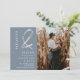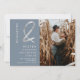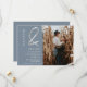 Foto com nomes modernos de prata-chic gravada, salvar a data em azul empoeirado editável. Adicione sua foto.