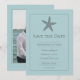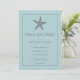 Este Anúncio de Save the Date do Monograma da Estrela-do-Mar vem com um design de texto simples, uma estrela-do-mar inclinada simples, monogramas dos noivos em uma caixa moderna delineada no verso aguardando sua foto e detalhes do casamento para personalizar na frente. Cores adicionais disponíveis com este design.