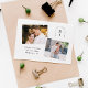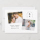 Imagem do Monograma de Arca Moderna Preta e Branca Salve a Data com um design minimalista, coloque suas iniciais e detalhes e carregue duas fotos. A parte traseira da placa apresenta um plano de fundo de padrão de grade.