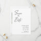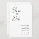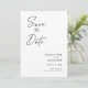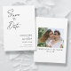 Cartões com fotos modernos, minimalistas e elegantes do noivado de casamento "Salvem a Data". Este design personalizado com elementos de texto moderno com um script de tinta de caligrafia exclusivo. A foto dos casais destaca a parte traseira da placa. As cores são escrevendo a preto em branco ou personalizam facilmente a cor base conforme necessário.