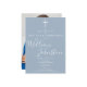 A assinatura de ouro Elegante da Primeira Comunhão salva o convite de data com um nome de assinatura de script elegante em um fundo azul empoeirado e foto especial no verso. Personalize com suas informações especiais de eventos em caracteres quânticos. Projetado por Thisnotme©